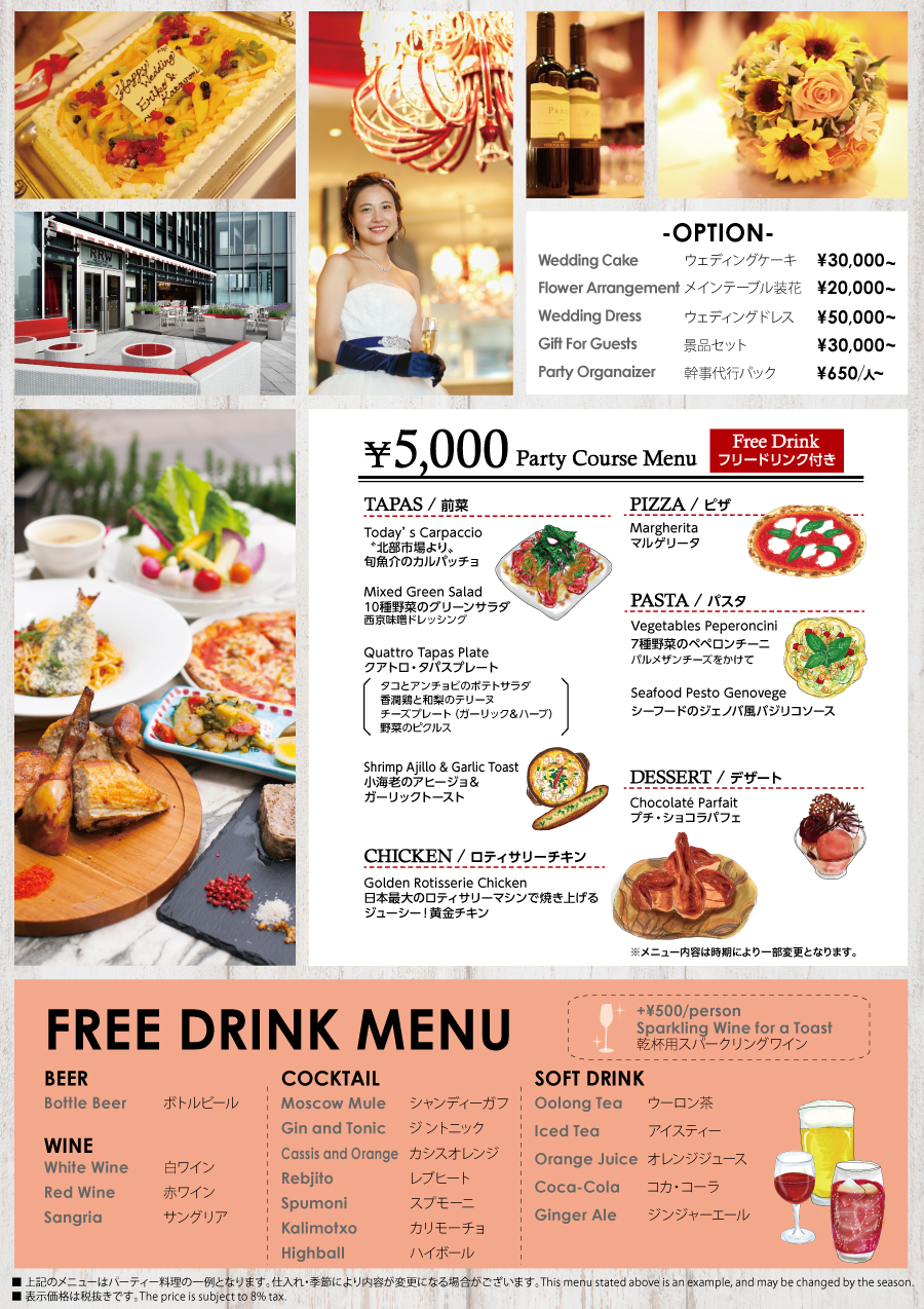 ランチ終了後のカフェ会、企業の歓送迎会、結婚式の2次会、会費制のパーティーなど、あらゆるシーンでご利用いただけます。